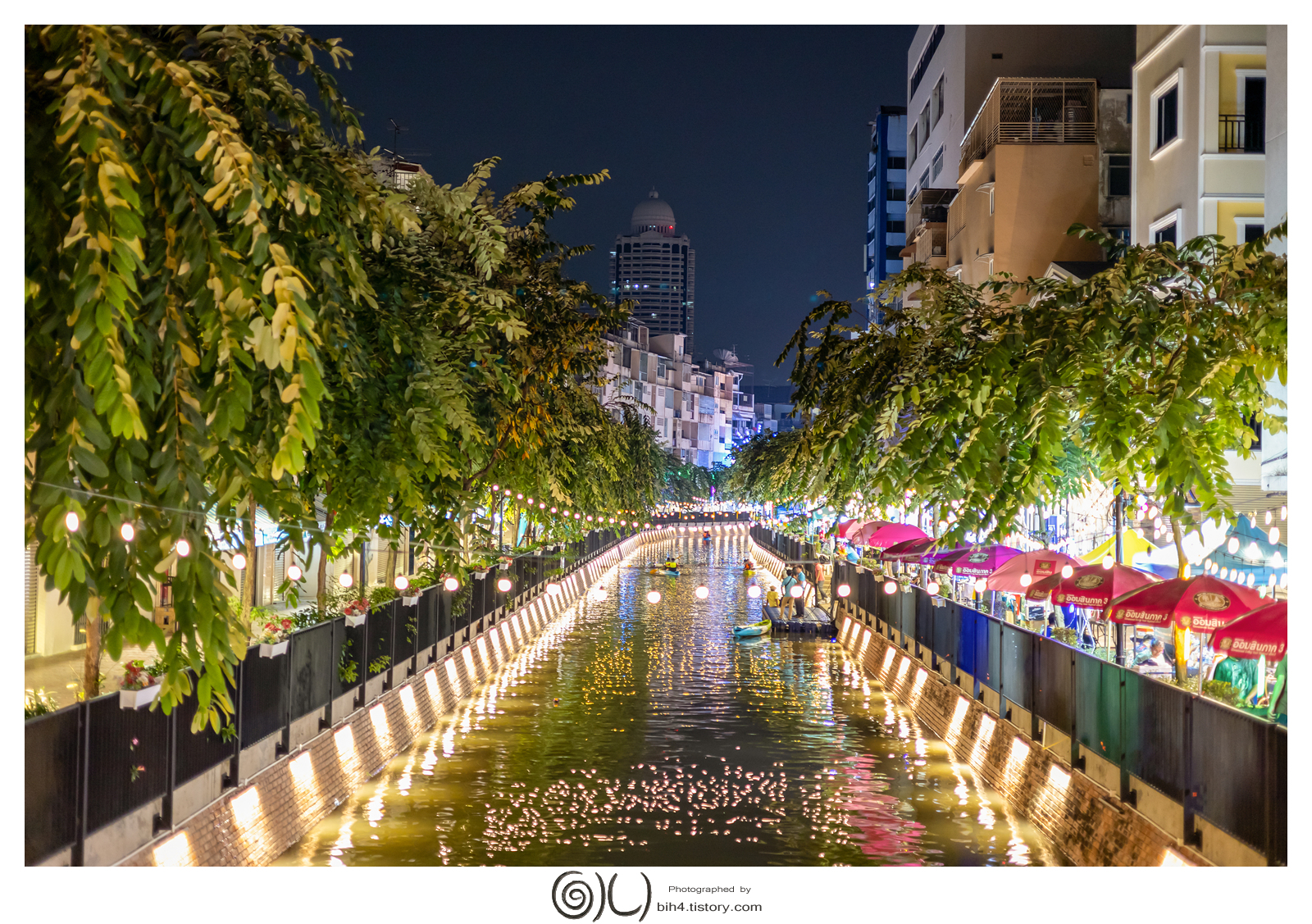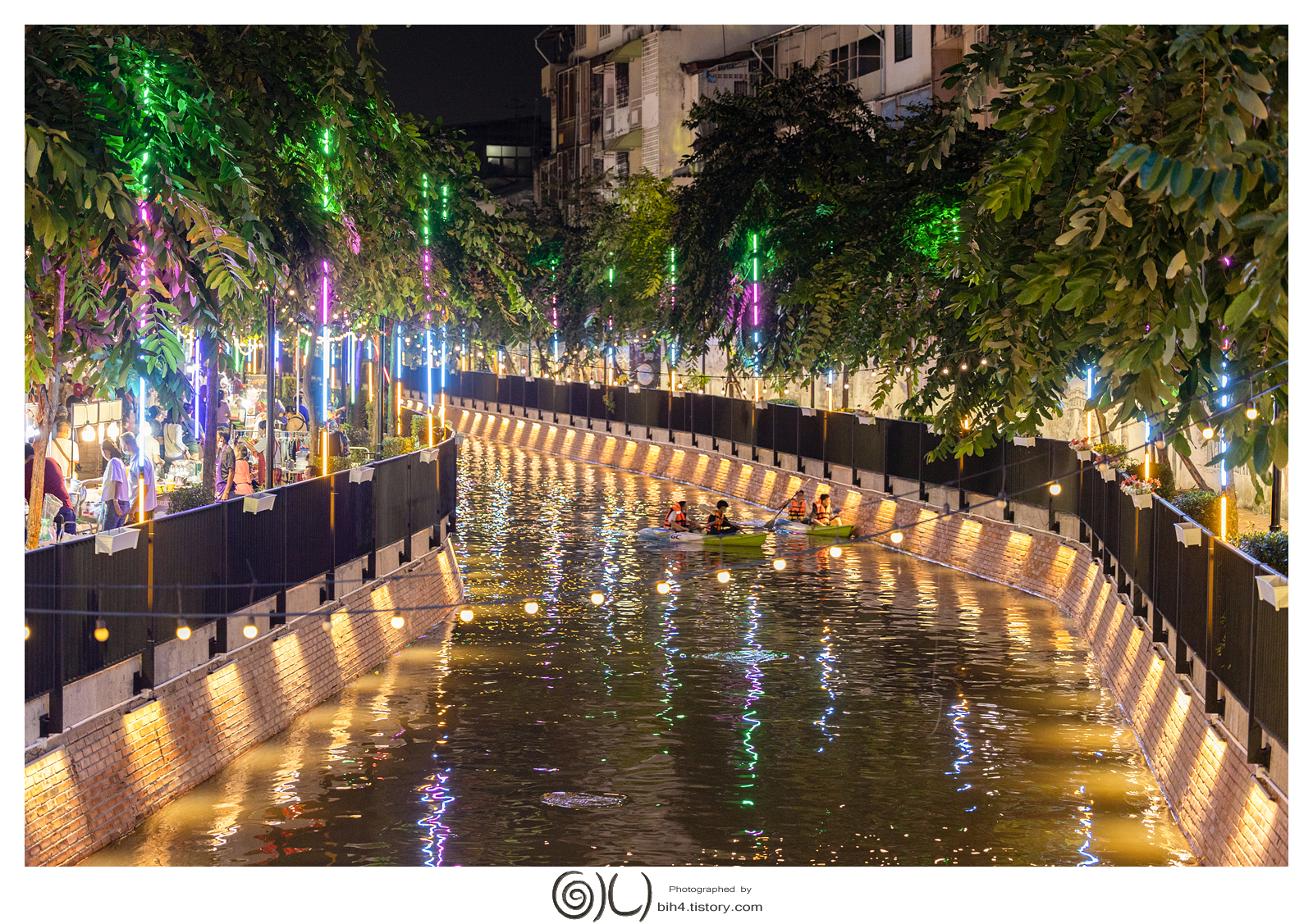 방콕 크렁옹앙 보행자거리. Ong Ang canal 낮과 밤